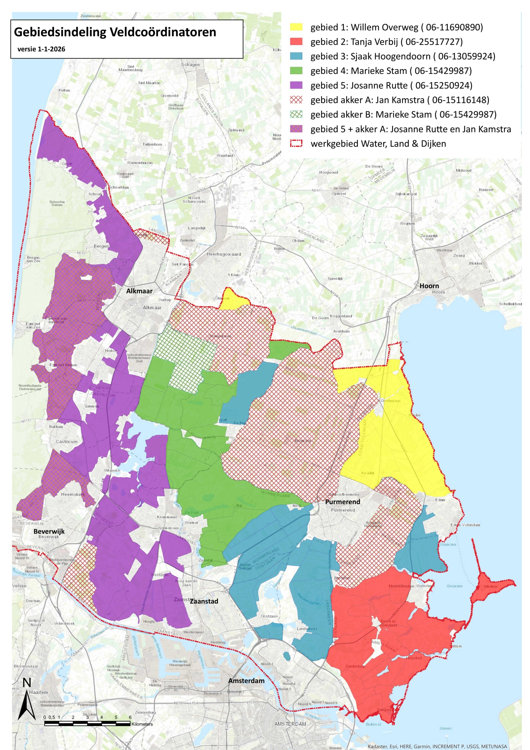 Iedere veldcoördinator heeft zijn of haar eigen werkgebied. Hier vindt u de indeling en hun contactgegevens. Wanneer u op de kaart klikt kunt u deze printen en/of downloaden.